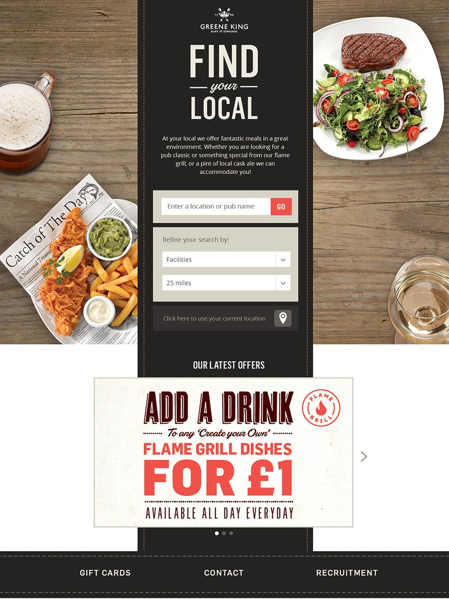 The hub site uses the Geolocation API to find pubs near the user, the search results are shown on a map and in list form along with a little information about the pub.